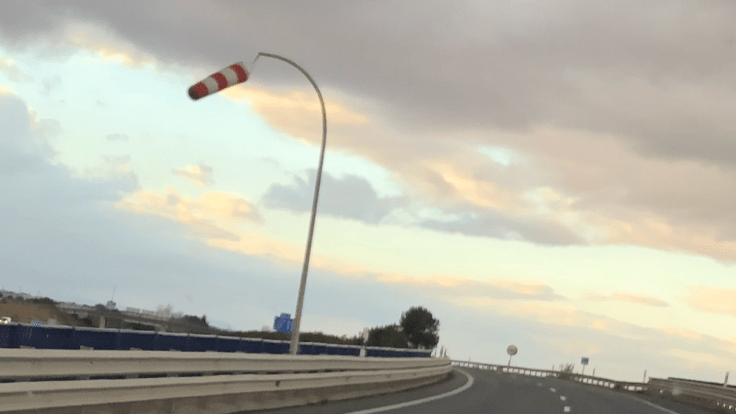 En el indicador de la foto se ve cómo el viento viene de la derecha y además fuerte. Eso significa que va a empujar en el lado derecho de nuestra moto que, cuanto más carenada sea, más superficie tendrá el viento para incidir sobre ella desviándonos hacia la izquierda.