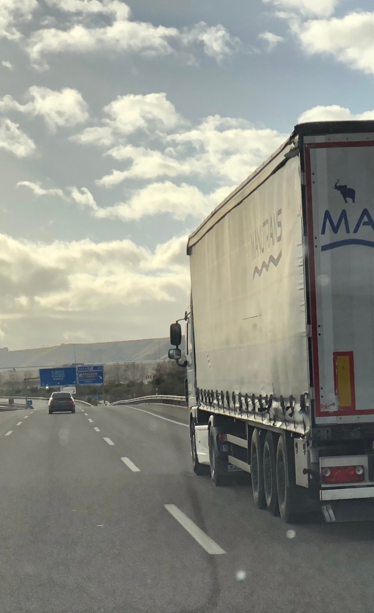 Al adelantar a un camión como vemos en la foto, iremos compensando el empuje lateral hasta alcanzarlo. En el momento en que lo alcanzamos, el propio camión nos tapa el viento y dejamos, de repente, de sufrir su fuerza. Esto hace que inmediatamente sintamos un vacío y la moto se nos va hacia la derecha. Seguimos protegidos del viento hasta que rebasamos al camión y, nada más asomar por delante de la cabina, recibimos de sopetón ese maldito empuje que nos hace desviarnos hacia la izquierda.